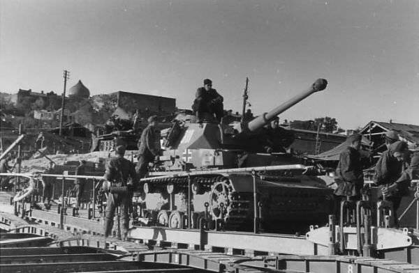 Три недели гитлеровцы восстанавливали мост. На дороге образовалась большая пробка, так как пользоваться приходилось только одной колеей."