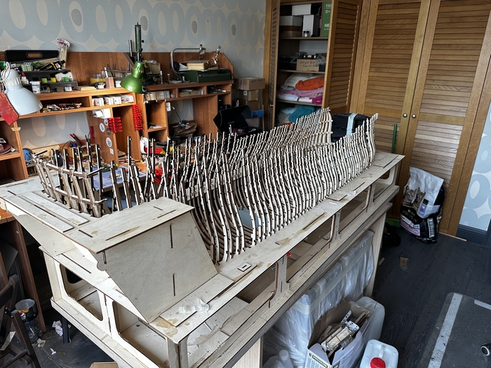 ну и спустя еще день возни и изучения морских узлов по ютубчику, корабль торжественно спущен "на воду" с шариками и чепчиками в воздух) и сдан в эксплуатацию. Ну и немного деталей.