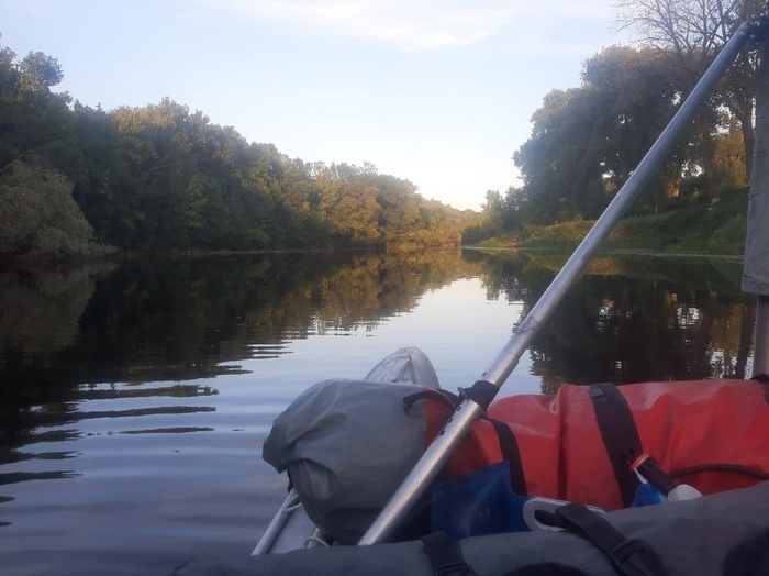 Назад в воскресенье вышли в обед, уже по течению и даже иногда с ветром. На озере раздуло так, что Бризёнок- как скаковая лошадь, рванул почти с места. Даже посуда посыпались в воду. Дошли до яхт-клуба на приличной скорости успешно перехватывая воздушные потоки у крон деревьев. Сдали драгоценное весло уже с хорошим настроением.