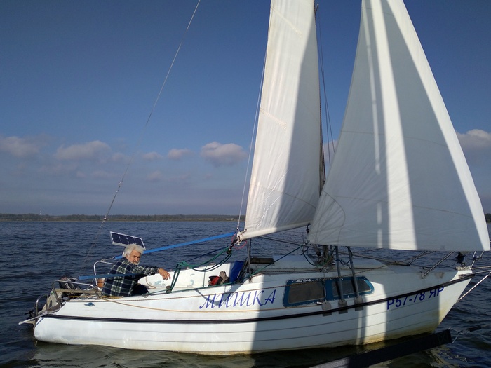 Швертбот или легкая, гоночная яхта, без двигателя.