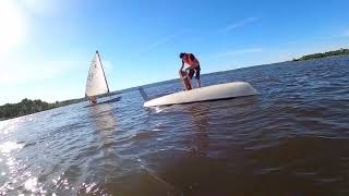 Важно помнить: лодка не утонет, поэтому отплывать от нее нельзя. Если самостоятельно не получается поставить ее в нормальное положение, то нужно забраться на нее и ждать тренера, НО! важно помнить, что в перевернутом состоянии лодка, может быть не видна, поэтому надо постараться привлечь внимание тренера любым доступным способом!