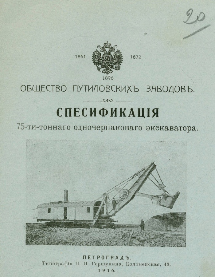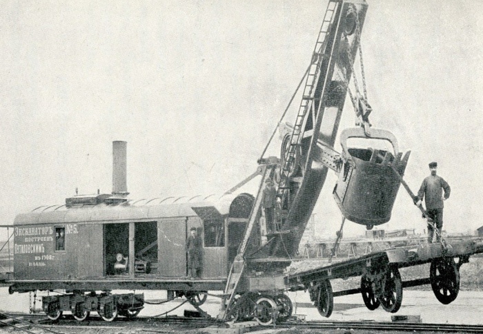 В 1913-1916 гг. при строительстве железной дороги Балогое-Полоцк путиловский экскаватор с ковшом емкостью 2,29 м3 разрабатывая тяжелую глину с погрузкой ее в железнодорожные платформы нормальной колеи (что было новостью в то время) вырабатывал до 3000 м3 за 12-часовую смену.