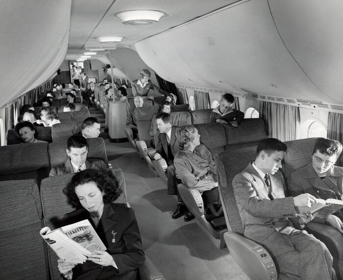 В фюзеляже с левого борта расположены три двери — две для входа пассажиров и одна служебная, а также запасный выход с правого борта. Загрузка багажных помещений механизирована и проводится через два люка, открывающихся внутрь фюзеляжа со сдвигом в сторону. Пассажирская кабина была разделена буфетом-кухней и средним вестибюлем на два салона — передний и задний. В каждом ряду располагалось шесть кресел, разделенных посередине проходом. Кресла, по три в блоке, устанавливались на рельсах и могли перемещаться по ним с фиксацией через каждые 30 мм, что позволяло менять шаг кресел и размещать в зависимости от класса 158, 146 и 134 пассажира.
