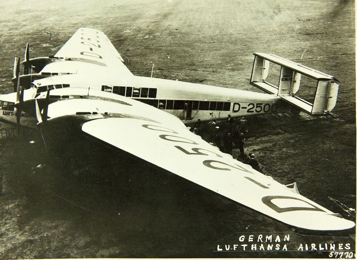 Второй экземпляр G-38 нес бортовой код D-2500 и логотипы авиакомпании "Люфтганза". Мотогондолы и стойки шасси были окрашены в черный цвет, а все остальные поверхности оставались в натуральном серебристом цвете дюраля. Обратите внимание на убранные в крыло радиаторы и кольцевую антенну радиокомпаса под фюзеляжем.
