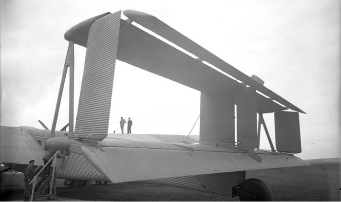 Сборка фюзеляжа G-38. Хорошо видна гофрированная дюралевая обшивка и ступенчатая форма салона. Также обращает на себя внимание - насколько толстым было крыло этого самолета.