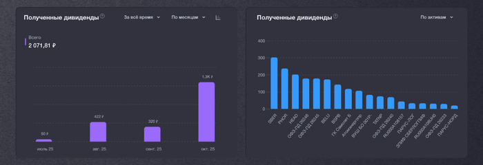 В октябре я успел получить дивиденды от Татнефти, ФосАгро, БСПб и Белуги, а падение рынка позволяет купить акции еще дешевле. Дивидендная пауза продлится недолго.