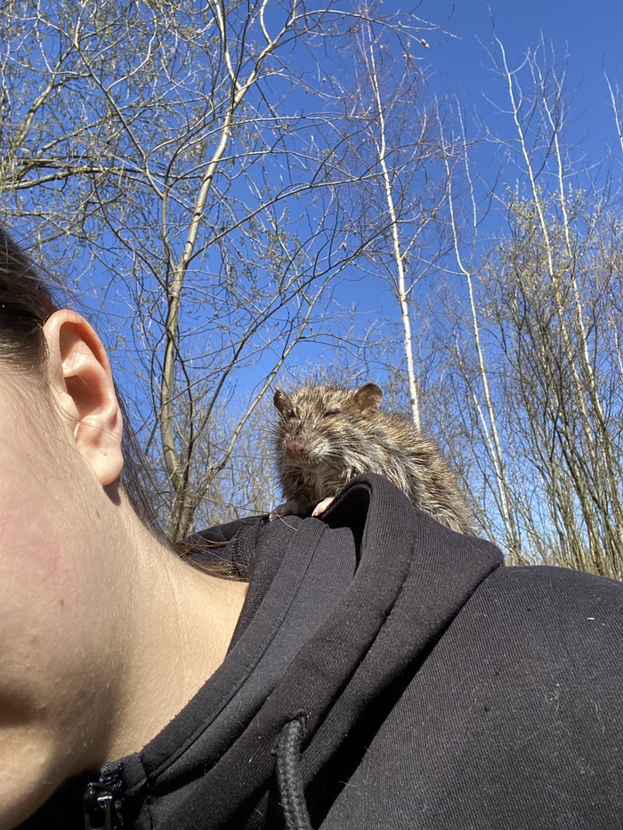 Как-то так. Местная кошка завела нам крысу. Не ты выбираешь животное, животное само выбирает тебя, а так же решает, когда и как у тебя завестись. Теперь люби, холь и лелей.
