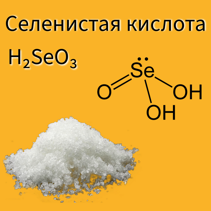 Селенистая кислота (H₂SeO₃) представляет собой неорганическое соединение, в котором селен находится в степени окисления +4. Это бесцветное кристаллическое вещество, хорошо растворимое в воде и обладающее сильными окислительными свойствами.