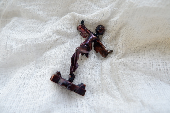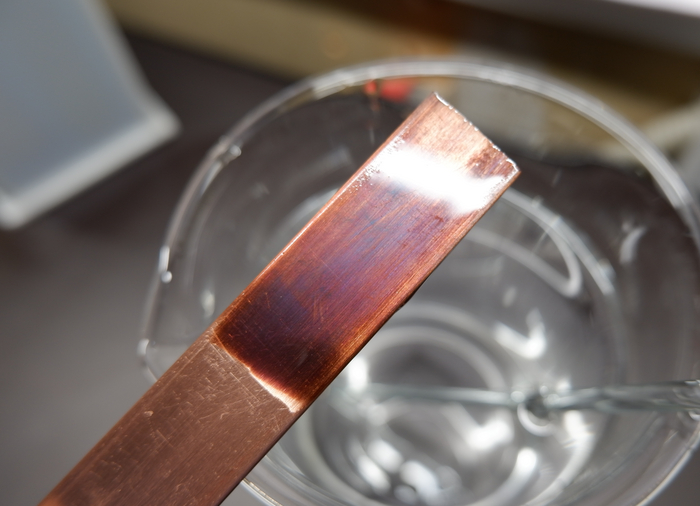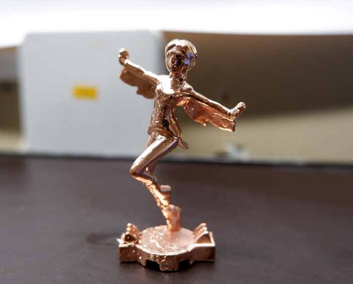 Предположительно, оттенки у меднёного изделия существенно различались из-за блескообразователей, которые я добавляла в электролит.