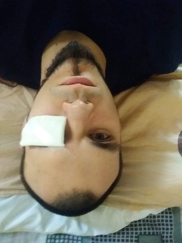 Полчаса до операции, глаз подготавливается (камера зеркалит, поэтому кажется, что левый глаз, но тут надо в голове отзеркалить обратно)