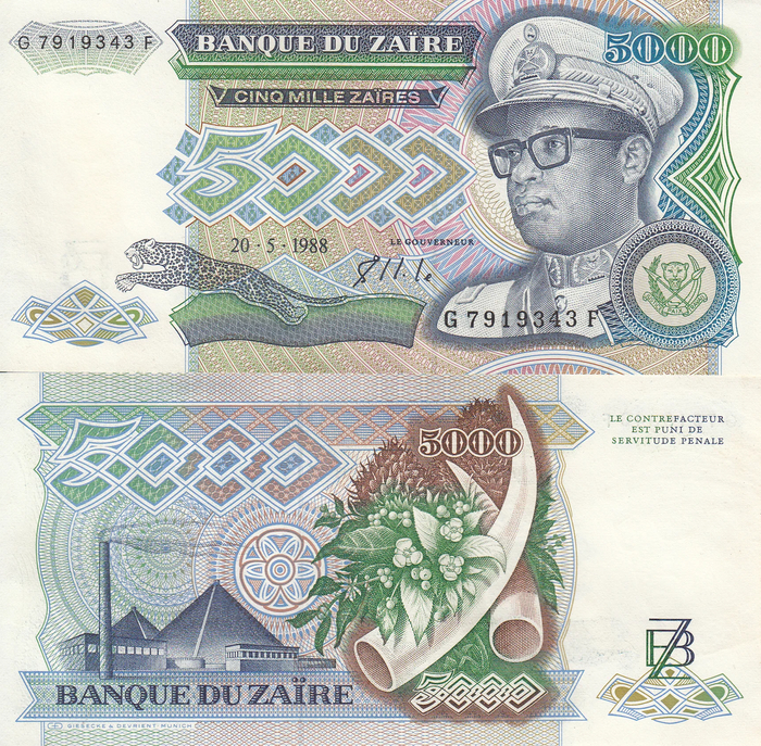 Республика Конго. 1000 франков 1991 года. (Ну да, это второе Конго, которое бывшее французское. Чтобы "два раза не вставать"). Если присмотреться - можно увидеть морскую нефтедобывающую платформу.