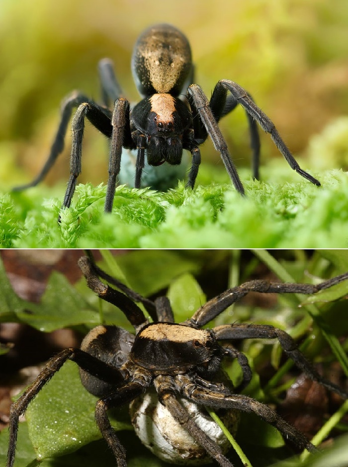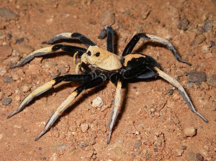 Это - hoggicosa forresti, из семейства пауков-волков, жительница австралийских пустынь и дальний родич нашего тарантула. Маленькая, кавайная, золотистая и большеглазая, интересно - а пончики она любит?