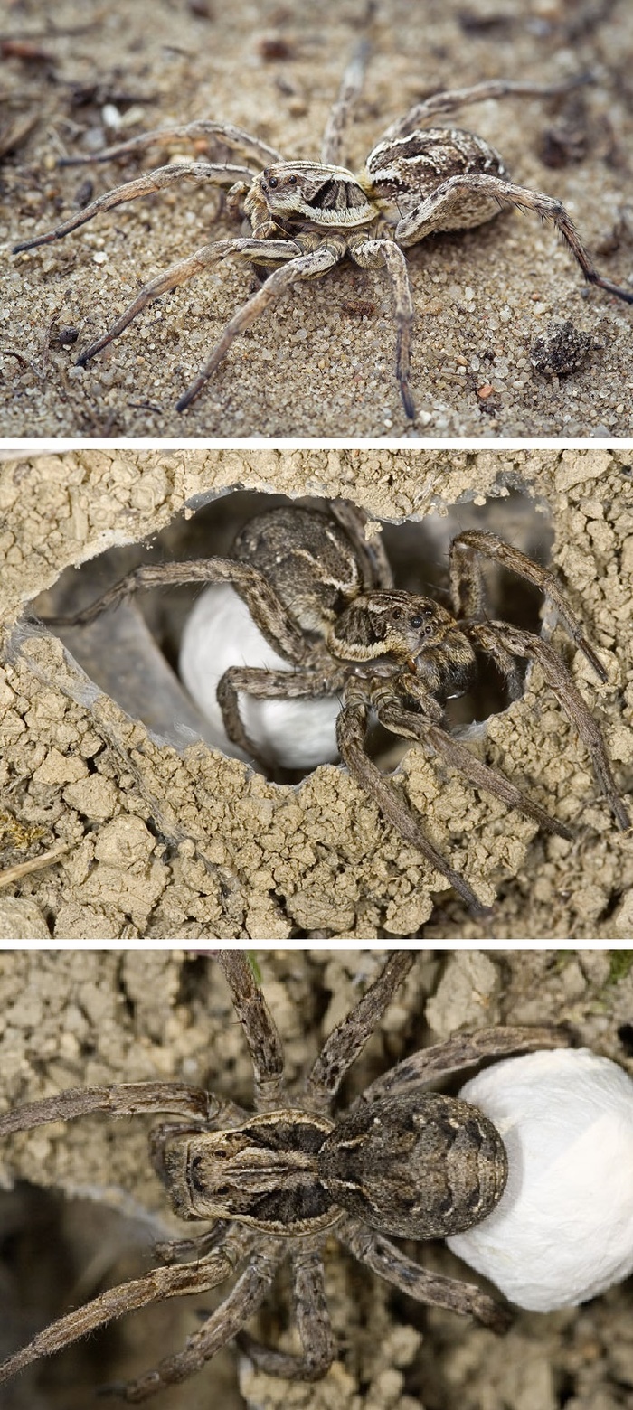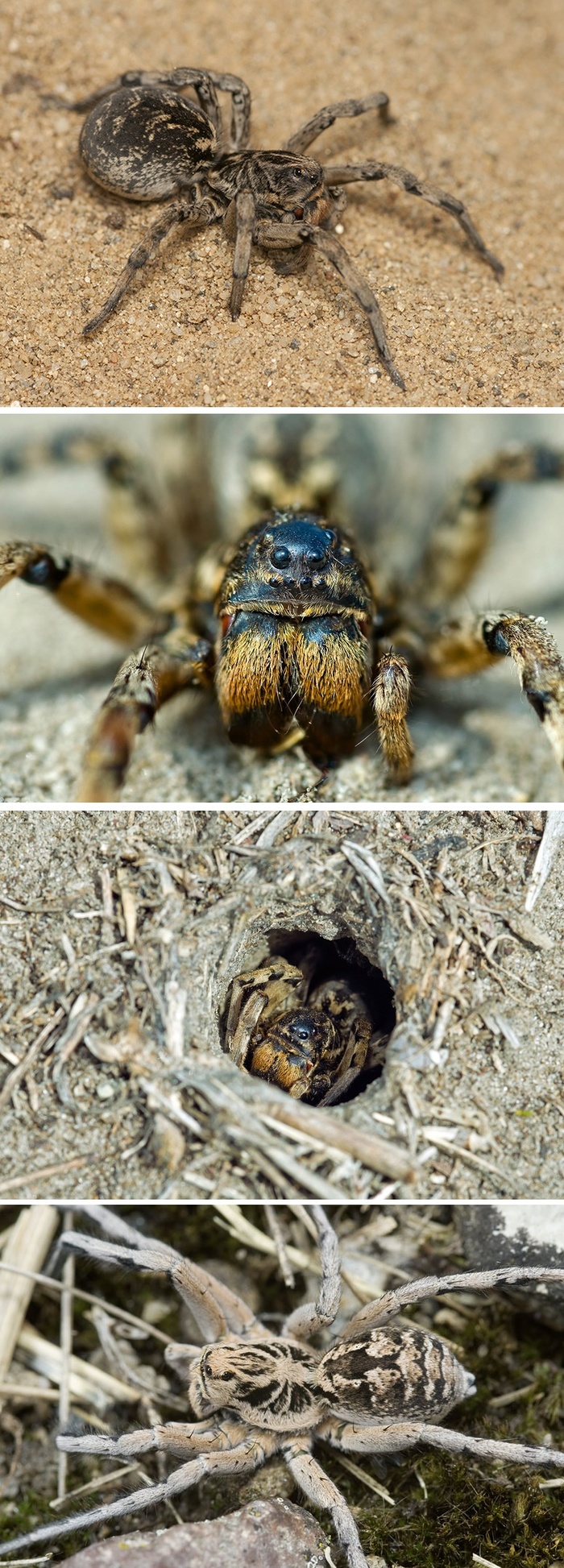 Hogna radiata, от Европы до Южной Сибири, не копает норок, ведёт бродячий образ жизни: