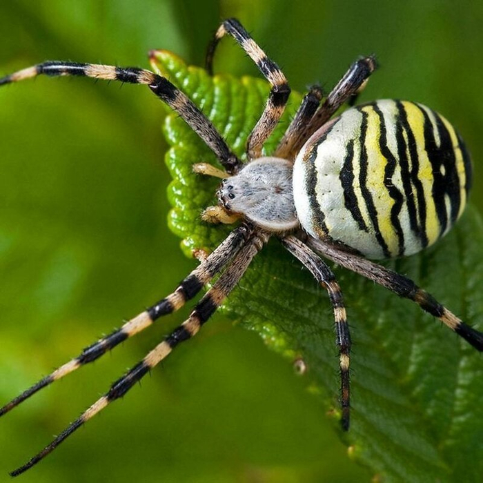 Выглядит паук-оса как будто собрался на Хэллоуин: жёлто-чёрные полоски на брюшке (привет, осы!), серебристая головогрудь и лапы с контрастными кольцами. Ярко, вызывающе и, честно говоря, пугающе. Особенно если вы наткнулись на него в сумерках у своего компоста.