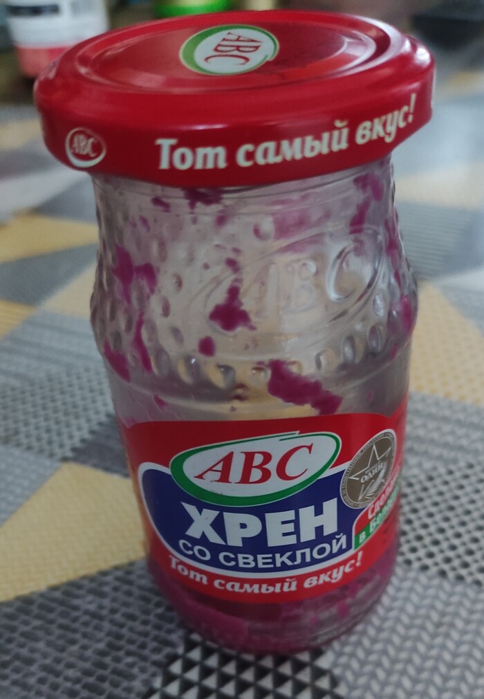 Есть еще один продукт из Беларуси. Если вижу его на прилавках - покупаю не думая) Эта баночка уже заканчивается, надо будет пополнить запасы. Два вида, этот и еще белый. Белый не такой ядреный. Вкус норм, конечно не как бабушка делала (там ваще атас хрен был), но просто так схомячить чайную ложку не получится. Рекомендую.