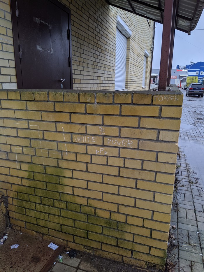 Убедительная просьба ко всем адептам великой белой рассы нацистских убеждений. Хватит уже портить внешний вид зданий пгт Мга своими дурацкими надписями, их вообще-то не так просто оттирать, да и не так то хочется этим заниматься.