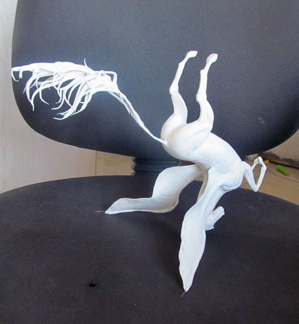 Это продолжение процесса: https://pikabu.ru/story/pegas_iz_polimernoy_glinyi_5221312 Лепится пегас из бархатного пластика.