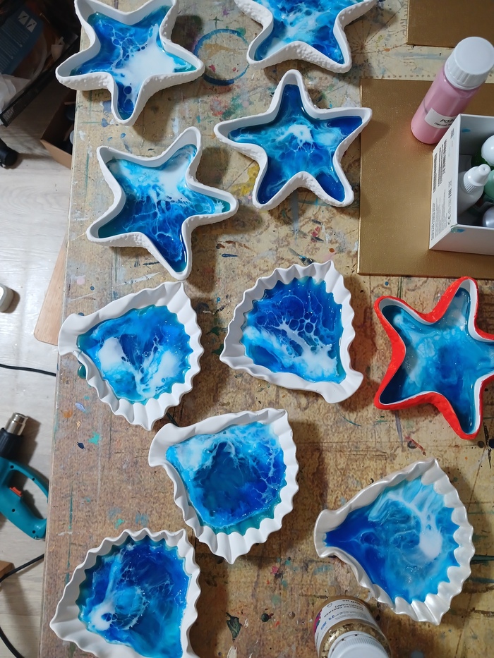 Гипсовую форму тоже отливала вручную, после ,заливала эпоксидной смолой.