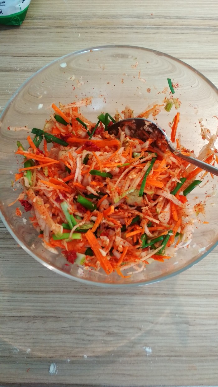 Без рыбного соуса и "киселя" вкус получается другой - обычная квашеная острая капуста с овощами.
