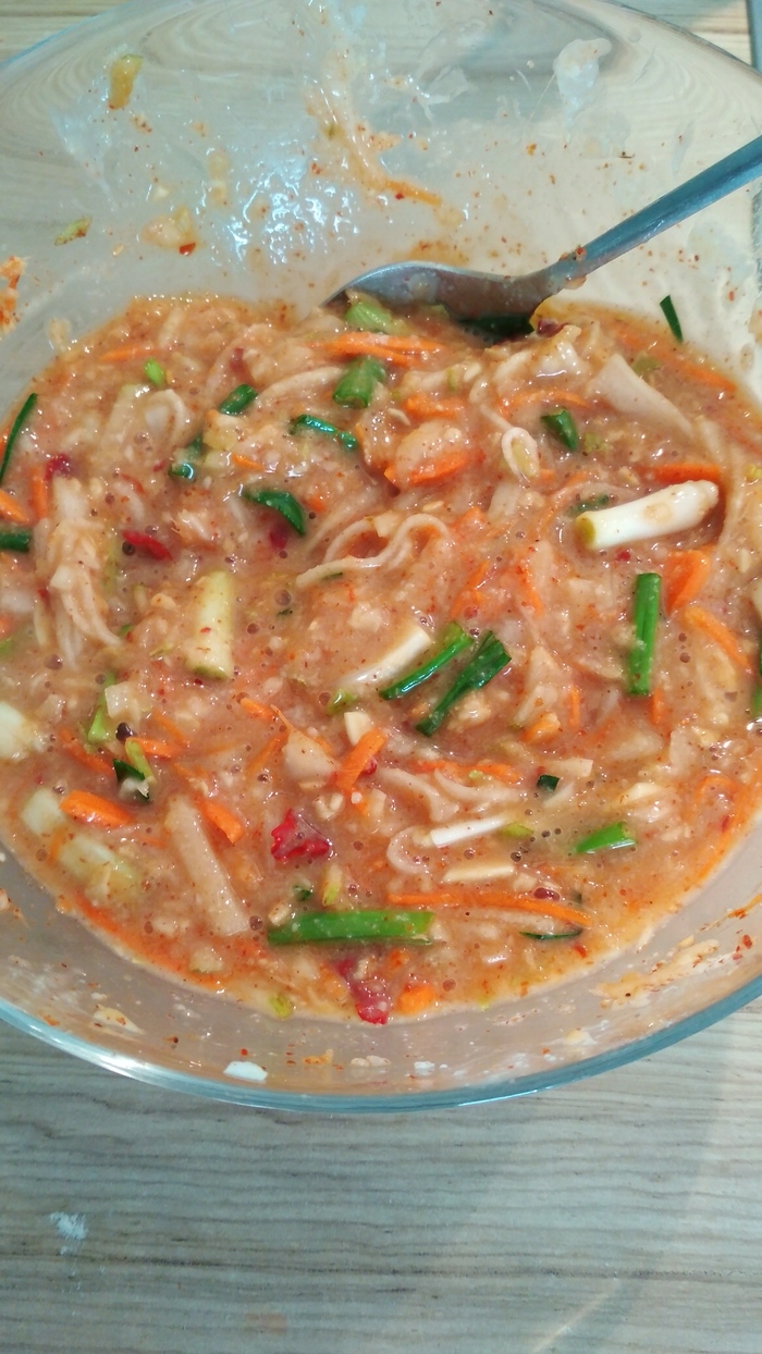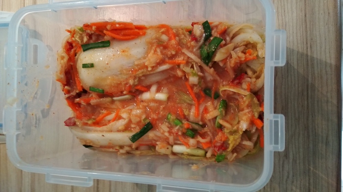 Рецептов кимчи множество. Я путем проб и ошибок, остановился для себя на варианте наиболее приближенном к классике. С рыбным соусом, грушей и рисовым киселем )))