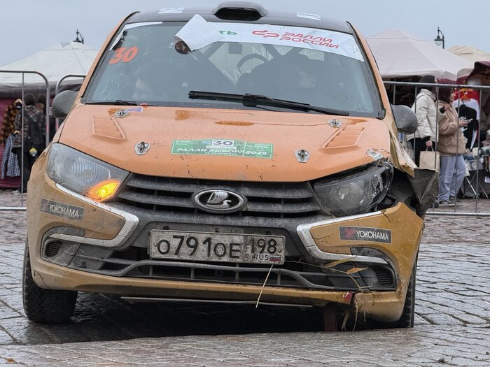 Финишируем доп, я снова кричу от радости, выходим обниматься со штурманом и идем смотреть, что там с бампером. А он целый и невредимый! Отмена паники, бампер остается с нами. Чего не скажешь о фаре и крыле; капот тоже пострадал, но его мы восстановим. Едем на финиш.