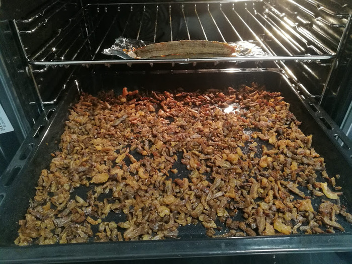 Итак: я взяла духовую говядину, обработала её, удалила все лишнее и нарезала мелкими кусочками скальпелем(мне так удобно). Многие измельчают мясо в фарш, жарят и далее сушат, но мне, хотелось приблизиться к оригиналу и я вялила сырые кусочки.