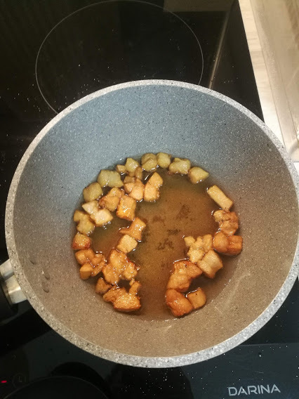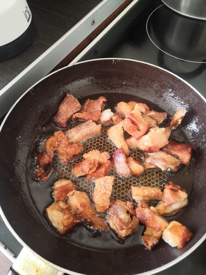 Взяла самую стрёмную сковородку в доме и начала вытапливать сало.