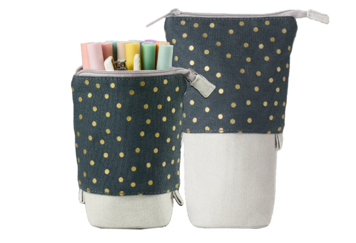 Во-первых, он красивый — благодаря сочетанию цветов и золотым акцентам выглядит как аксессуар в скандинавском стиле. Во-вторых, функциональный — легко превращается из пенала в подставку для канцелярии. Сделан из водонепроницаемого материала и устойчив за счёт твёрдого дна. Внутри — один большой отсек и три вместительных кармашка. Ссылка на него
