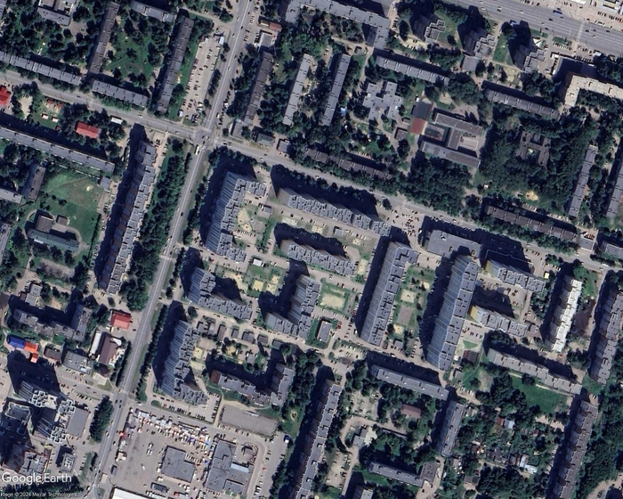 2002 - самая рання съёмка из космоса. 2014 - период сноса застройки. 2023 - вид на современные жилые дома.