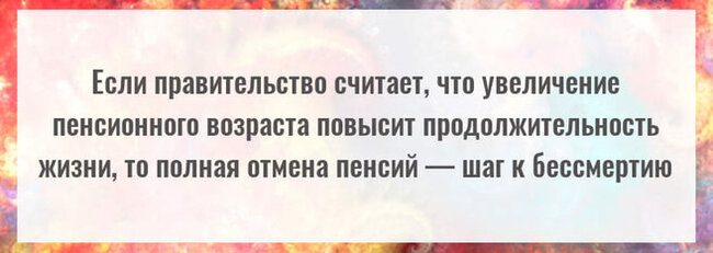 Закон, как обычно, приняли под "горячее одобрение" местного населения, а точнее -- при молчаливом недовольстве, которым так хорошо известны эстонцы всю свою долгую историю. И если сохранится нынешняя тенденция увеличения продолжительности человеческого существования -- в коме ли, в деменции, в полном параличе... -- то моя внучка 2012 года рождения выйдет на пенсию... в 71 год.
