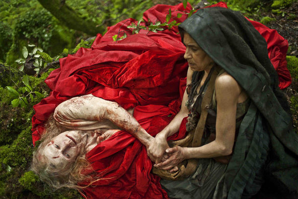 И вот пришло это время и когда всё случилось по сказанному, бедная мать, разбитая несчастьем, после горячего плача, закрыла свою мертвую девочку, в семи хрустальных гробах, вложив один в другой; и поставила в самой дальней комнате дворца.