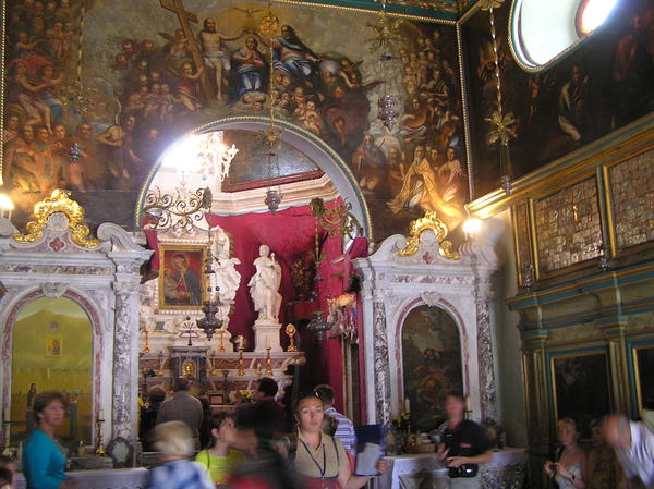 Рукотворный остров Адриатики. Он был построен поверх рифа после того, как в 1452 году два моряка из Пераста, братья Мортешичи, нашли на нём икону Богородицы, которая излечила одного из них от болезни.