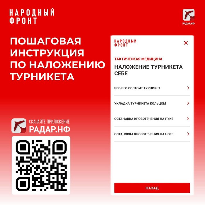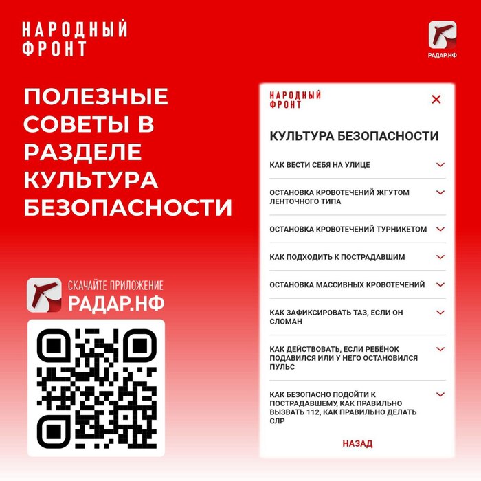 В чрезвычайной ситуации важно действовать быстро и правильно. "Радар.НФ" — это карманный инструктор по выживанию. С помощью разделов "Культура безопасности" и "Тактическая медицина" вы научитесь оказывать первую помощь. Подробные алгоритмы помогут вам справиться с кровотечениями, переломами, провести сердечно-лёгочную реанимацию и многое другое.️