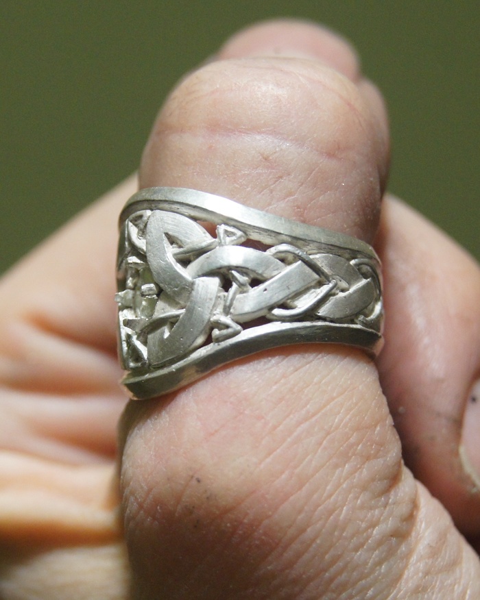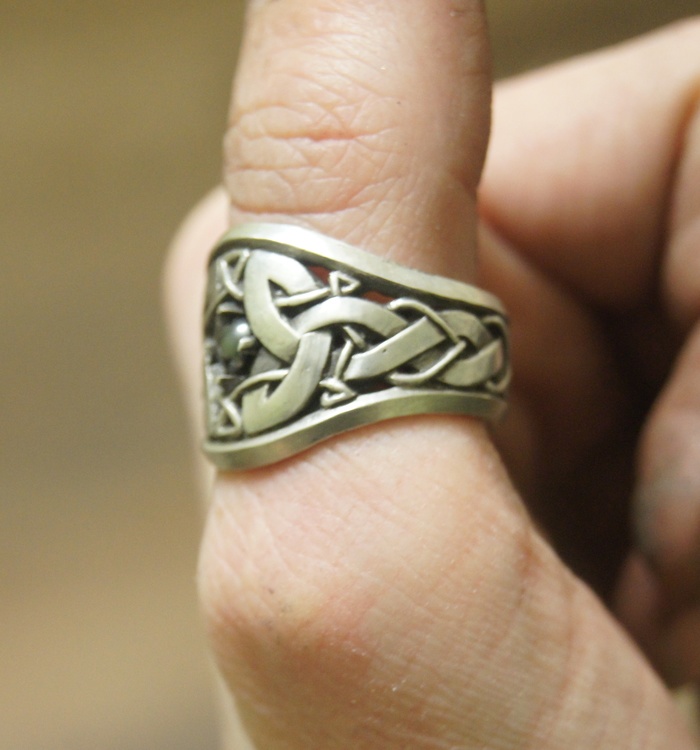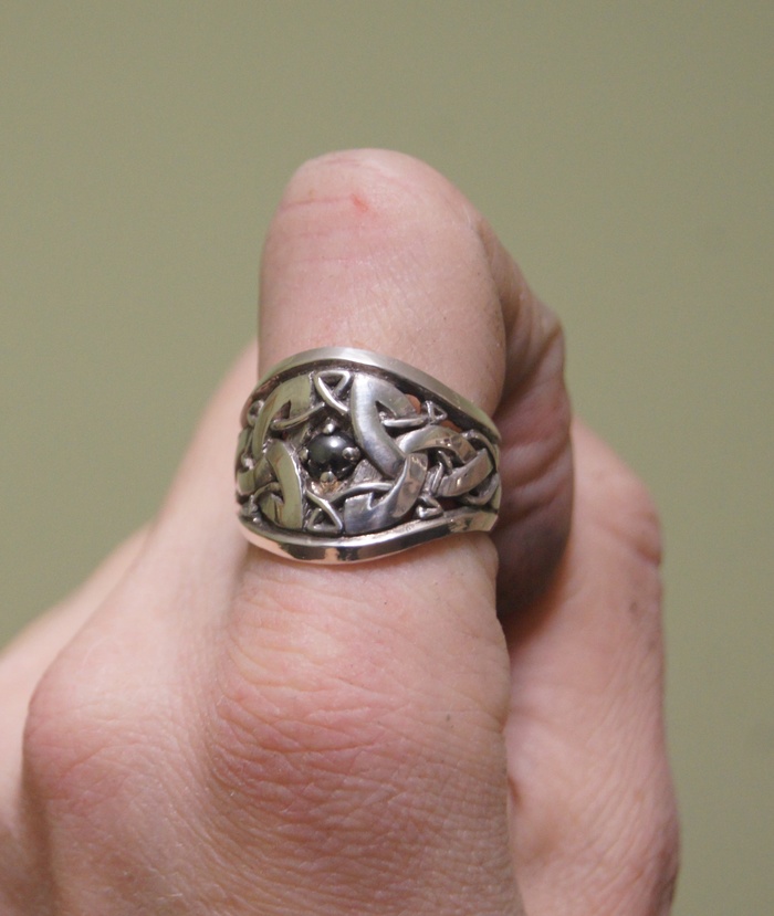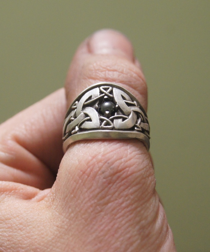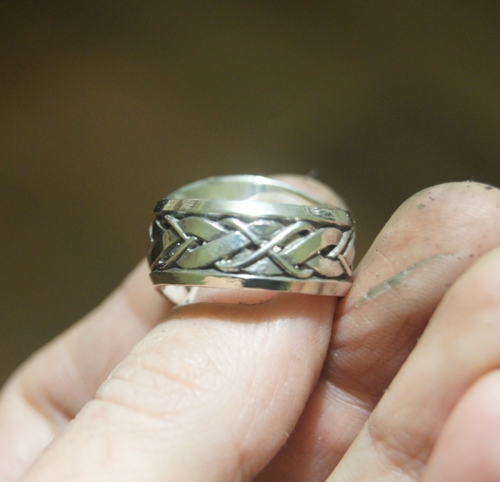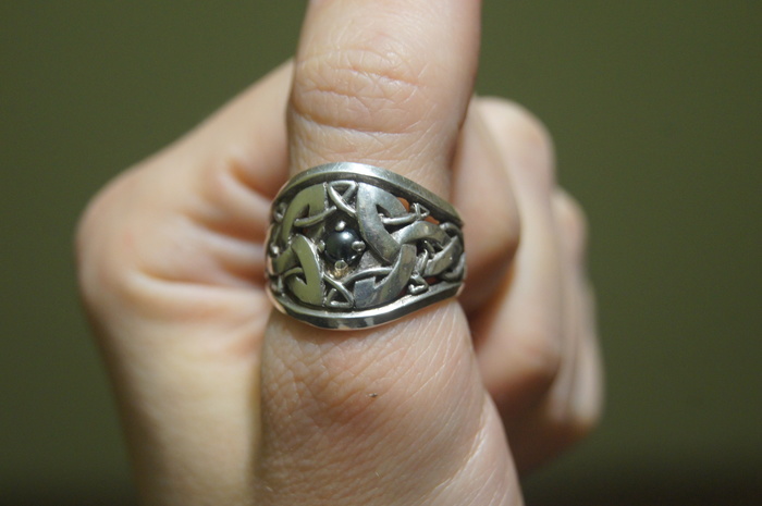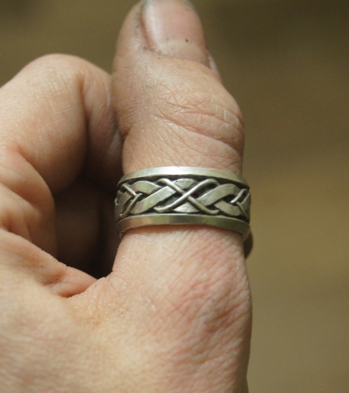 Почти полтора года назад, рассматривая старые фотки своего парня, увидела у него на пальце симпатичное кольцо. Спросила, где же оно сейчас. Он ответил, что потерял и больше ничего похожего нигде не видел, а другое и не по нраву. И я решила сделать что-то подобное, учитывая все особенности его вкусов.