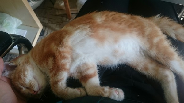 Позвав своей благоверной такси, начал думать над ночлегом, а с этим стоял очень большой вопрос: рыжий не хотел уходить с моих рук. Абсолютно. После того как он засыпал на руках, пытался его на подушку в коридоре уложить, с старой плюшевой игрушкой в качестве подушки/цели для клыков и когтей, но он тут же просыпался и не давал уйти. В результате так и улегся, в комплекте для бега на кровати, а на груди, разложившись на всю ширь, лежит император Рима.