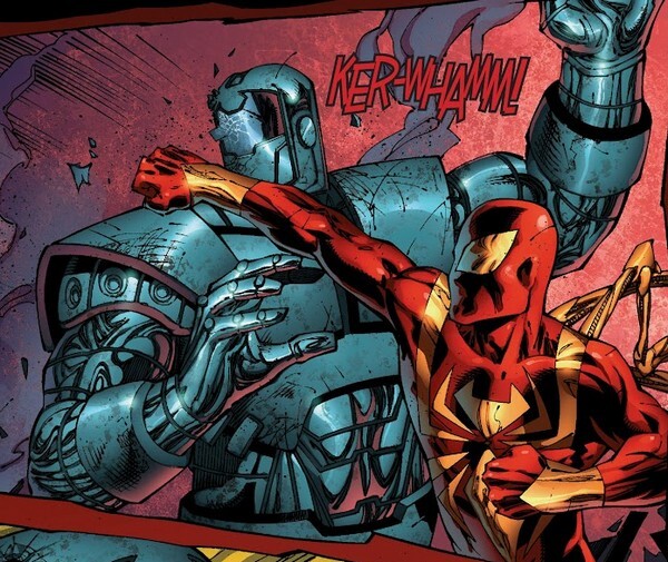 Разбираться с ними придётся в комиксе Amazing Spider-Man #523. Двойники Мстителей круты, но поле боя довольно тесное, двойники сражаются разлаженно, не как команда, не прикрывают друг друга – это позволяет устроить белиберду, сталкивая их друг с другом. В какой-то момент двойники всё-таки решают работать более слаженно – но тут окупается то, что Спайди предупредил Тони, и на помощь прибывают настоящие Мстители. Тут и ставшая практически мемом на западе фраза Кэпа звучит: “Добрый день. У вас есть три секунды на то, чтобы сдаться. К несчастью для вас, я произносил это пять секунд. Мстители, к бою!”. Оставив Мстителей сражаться с двойниками, Спайди бежит останавливать ракету – как только он спалился, Гидровцы передвинули запуск с “через пару дней” на “через несколько минут”. Железный Человек отправляется с ним, на всякий случай и для ускорения (база большая, Питер на паутинке до ракеты вовремя не доберётся).
