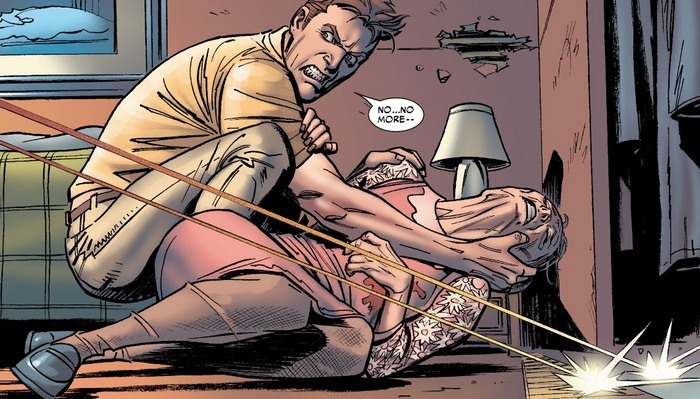 Да и хрен с ними пока что. Главное – Мэри Джейн безумно рада, что Питер жив-здоров, но бесится из-за того, что ей посыпались звонки с предложениями о съёмках от режиссёров, которые раньше её забраковали. Им не нужно актёрское мастерство, им нужен скандал, работа с актрисой, которая изменила мужу с Тони Старком. Кстати, Тони заглядывает в гости к журналисту. “Мистер журналист, вы уважаемый человек, счастливо женатый, с двумя детьми. Но раз уж вы считаете нормальным преследовать людей с камерой ради шоксенсаций, так уж и быть. Мои люди тоже за вами проследили и наснимали много интересного. Поэтому давайте поступим так. Вы пишете статью о том, как вам жаль, что вы так неправильно поняли всё увиденное, услышанное и унюханное, официально просите прощения и публикуете опровержения, иначе я пускаю все свои деньги (а их у меня много) на то, чтобы растереть вас в порошок абсолютно легальными методами”. Славно. А Питер, задумавшись о том, что его тётя Мэй начала встречаться с Джарвисом (сладкая парочка!), идёт в ванную...и там вырубается. С кем не бывает? Фигня, прошло же?