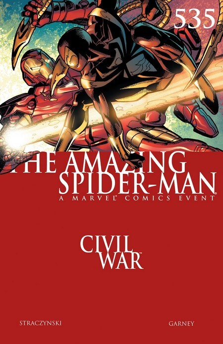 Вот и конец прекрасной дружбе... и начало комиксу Amazing Spider-Man #536. Железный Человек в ярости. “Я тебе доверял! Всячески поддерживал! Такова твоя благодарность?”. Питер же отвечает ударами – но Тони дистанционно отключает его костюм, что Питера обездвиживает. “Я технократ, Питер. Ты же не думаешь, что я выдал бы тебе оружие без предохранителя? В любом случае, ты уже зарегистрирован. Пойдём, поговорим мирно, и я забуду это недоразумение...”. Но оказывается. Человек-Паук знал о “предохранителе” и нашёл способ его взломать. И он заново накидывает Старку люлей, заплетает ему всю башку паутиной и ныряет в ближайший канализационный люк. Но... куда теперь? Некоторое время (и два выпуска минисерии Civil War) спустя Питер наведывается в безопасное место, куда переселились Мэй и ЭмДжей (заброшенную школу, где Питер когда-то сначала учился, затем преподавал), и сообщает, что намерен примкнуть к героям-повстанцам. Не принимая возражений Питера, Мэри Джейн и тётя Мэй утверждают, что не свалят из города и не бросят его. Они убедили Питера принять решение, и они несут за него такую же ответственность. Эм Джей после этого собирается набрать припасов. “ЭмДжей, я сам... – Твоё лицо сейчас всем известно. – А твоё типа нет, мисс супермодель? – (расстёгивая рубашку) Есть способы сделать так, чтобы моё лицо не запомнилось”.