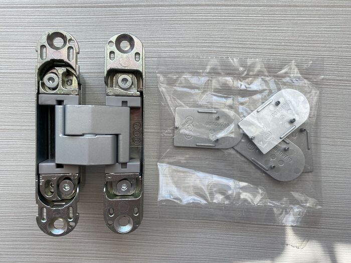 В назначенный день приехали установщики, сделали монтаж короба и навесили полотно. Я выбрал скрытые петли Invisacta. Их регулировали, наверное, раз три, чтобы дверь идеально «встала» в проем и плотно прилегала.