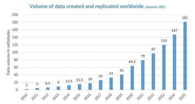 Объём данных, которые мы производим и используем, растёт феноменальными темпами. СМИ сегодня существуют преимущественно в цифровом формате, данные предприятий всё чаще хранятся на облачных платформах, а учёные накапливают огромные массивы исследовательской информации. Не забываем и про снимки из космоса и мемы с котиками. К 2025 году скорость роста данных превысит 175 зеттабайт в год. Центры обработки данных изо всех сил пытаются не отставать. Но объёмы продолжают увеличиваться с каждым днём.