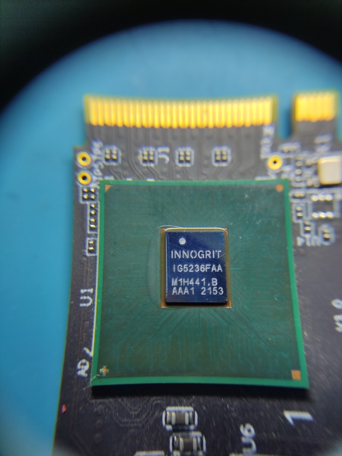 Постигло его несчастье в первой же установке. Он сказал ХРУСЬ при установке радиатора... Кто ж знал, что щедрый производитель материнки поставит стойки под все типоразмеры m.2... ХРУСЬ пришёлся на один из 4 чипов памяти.