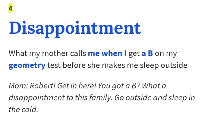 Именно так называет меня моя мать, когда я получаю 4 по геометрии, перед тем как отправить меня спать на улице.
