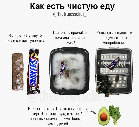 Clean food* (дословно - чистая еда) - выражение, означающее "полезная, натуральная, необработанная" еда.
