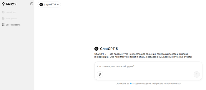 StudyAI — сервис предоставляет доступ к продвинутой версии ChatGPT на русском языке, с оплатой в рублях по модели pay-per-message. Идеален для быстрой генерации текстов докладов, идей и структур, когда нужен точный и контекстный ответ.