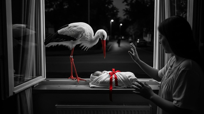 Я дёрнул шторы одним движением, и сердце у меня сжалось от страха. Сильнее, чем от самого факта аиста или ребёнка на подоконнике. Я осмыслил то, что увидел в тот краткий миг.