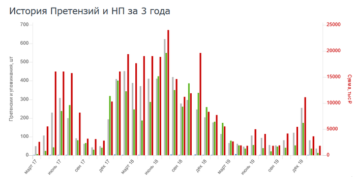 Чуть ниже будет история Претензий и НП за 3 года в виде графика. Плохо, если так: