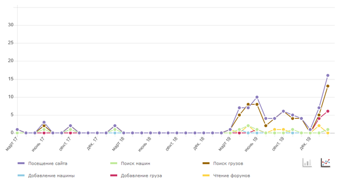 На нем мы видим, что компания ведёт деятельность. Плохо, если график выглядит так: