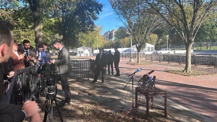Зеленскому пришлось проводить пресс-конференцию за забором Белого дома в ближайшем парке.
