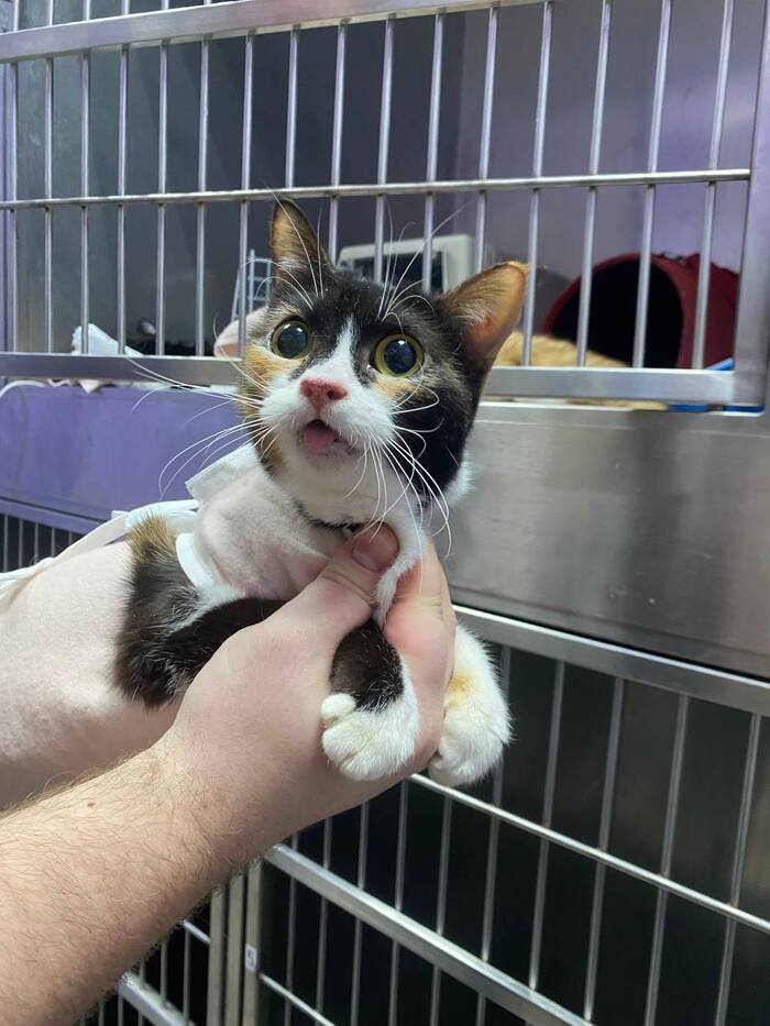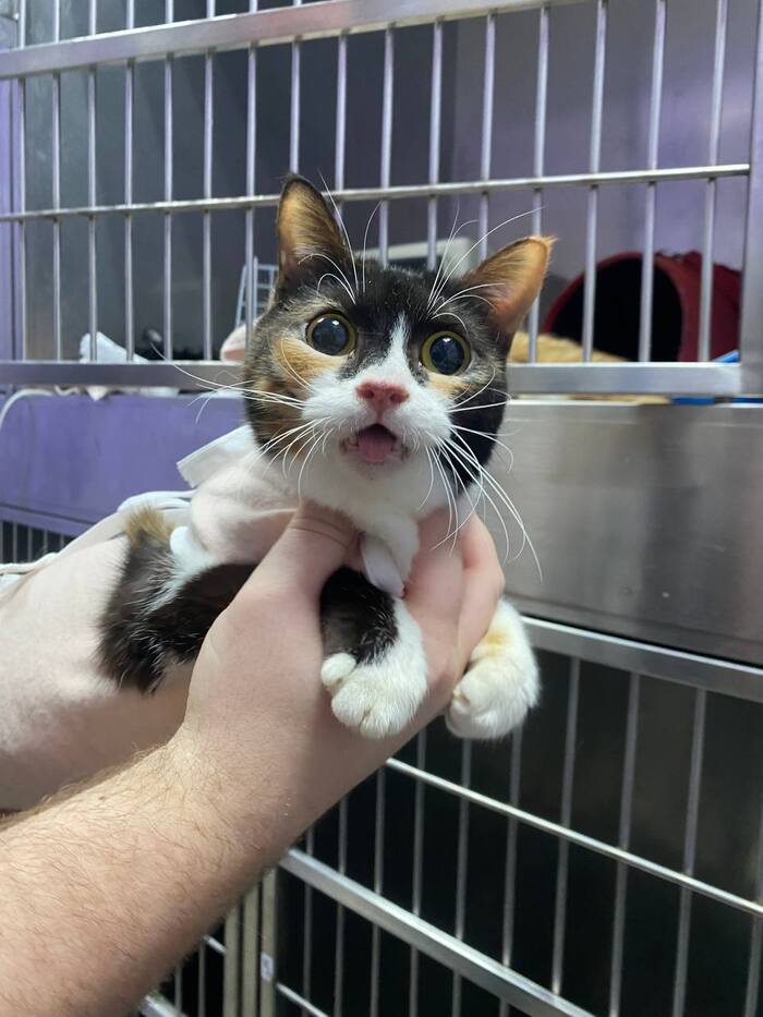 Также с улицы удалось забрать ещё одного серенького котёнка примерно 3-4 месяцев.