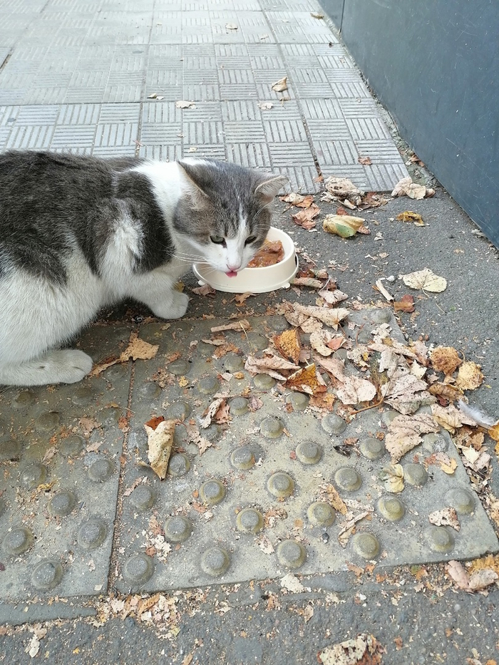 Я уже про них писала: чернушка (стерилизована), хозяев не стало и она выживает уже года три в подвале, один раз собаки её потрепали, выжила. Другой кот - я его зову "лысый", его подстригли и выставили на выживание, он очень необычный, выжил зиму, ласковый и несчастный. Ну и бело-чёрный разговорчивый и ручной. Они всегда встречают утром, остальные - боятся подходить, но очень ждут, когда их покормят. Может кто-нибудь решится взять к себе